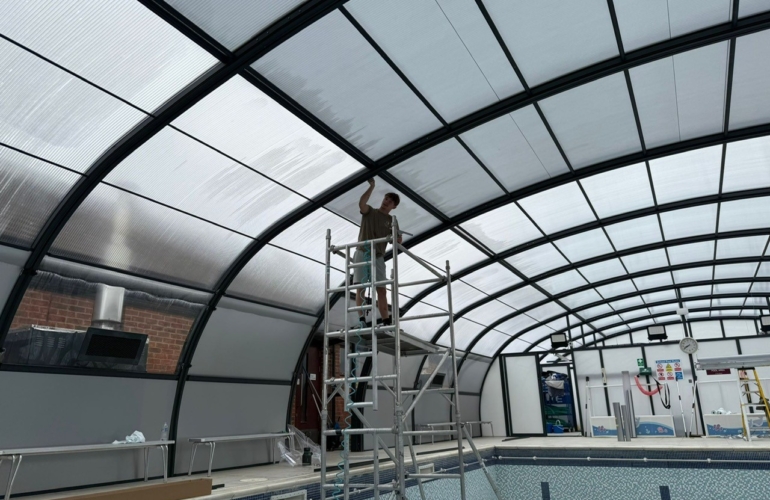 The film once installed would reduce internal temperatures significantly in the Summer by reflecting the sun’s rays, and provide some insulating properties in the Winter months to ensure the pool could be used throughout the majority of the year.